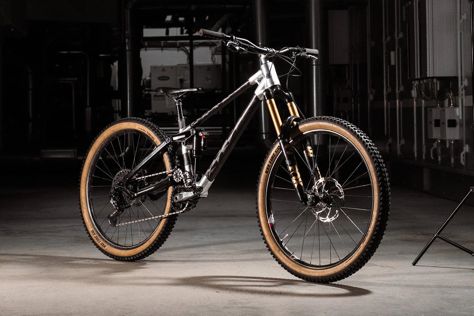 Mullet, karbonramme, 180 mm gaffel og 165 mm high-pivot bakhjulsoppheng